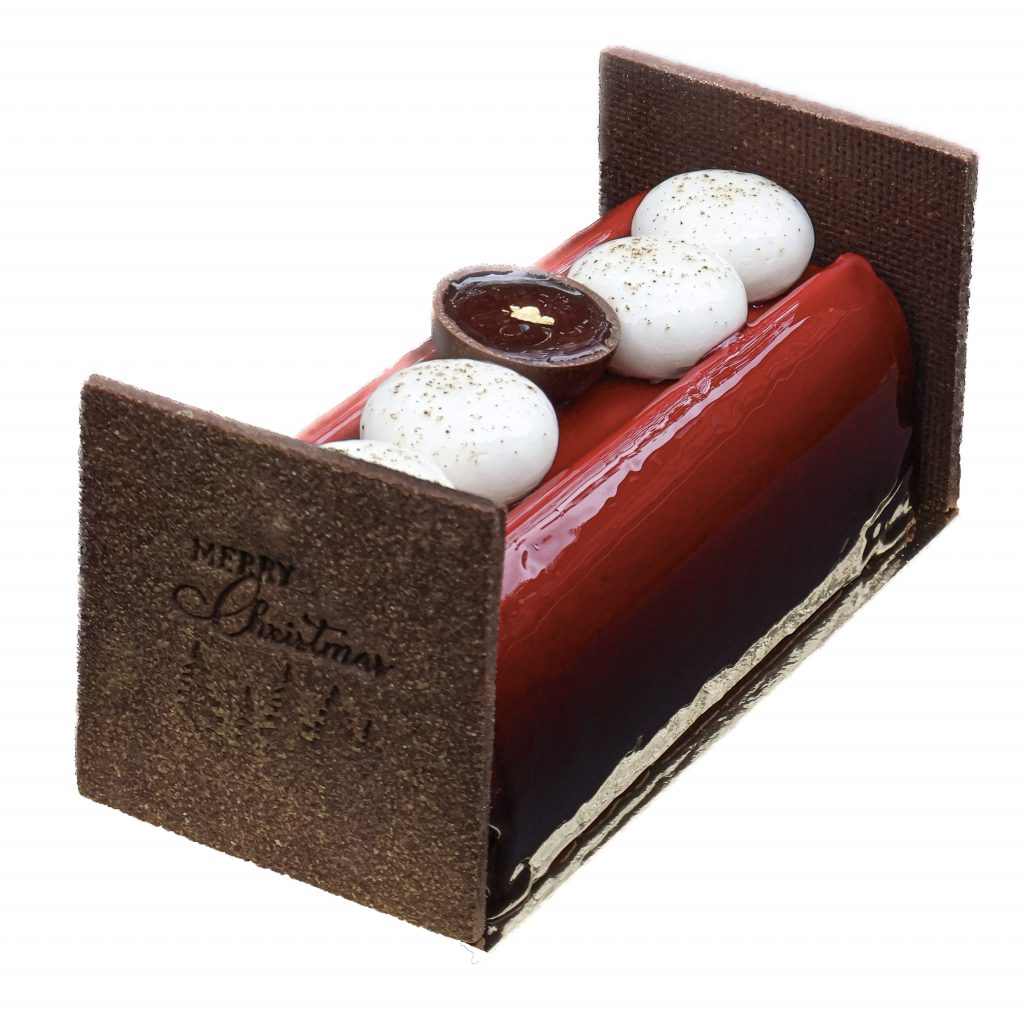 The flavours are classically perfect, an orange infused crème brulee is encased in a decadent Valrhona dark chocolate mousse .Textures are very important and Eric uses a crunchy orange streusel, praline and a chocolate sponge to excite the palette. All of this is finished with a shiny chocolate glaze and decorated with crunchy pearls and the cake personal logo. This is the Belle Epoque signature cake.